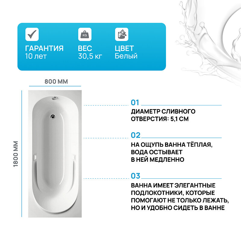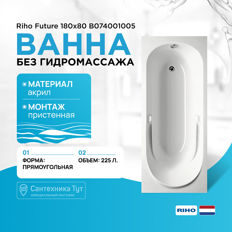 Riho Акриловая ванна Future 180 x 80 см, цвет белый, (BC3100500000000(B074001005) 31 266 ₽