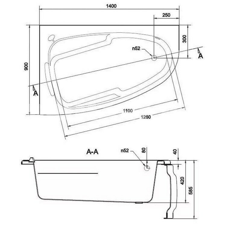 Ванна Gamma 140х70 см, акриловая, на каркасе, экран к ванне Gamma 140