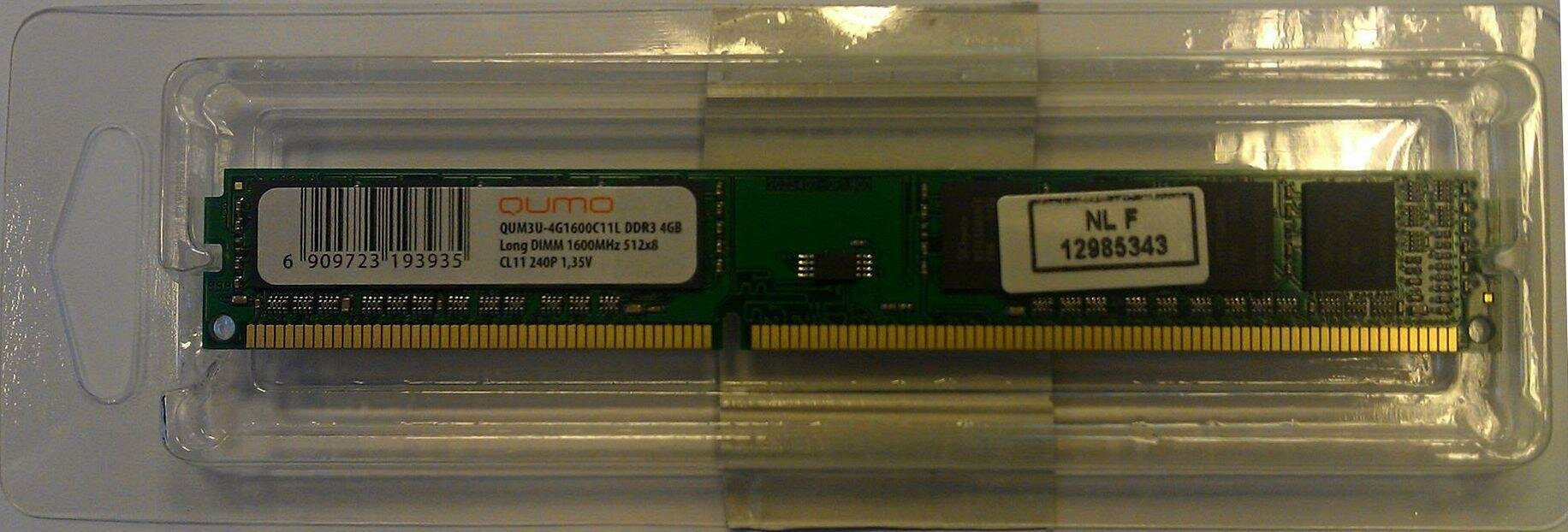 Qumo DDR3 DIMM 4GB PC3-12800 1600MHz QUM3U-4G1600C N 11L 1.35V