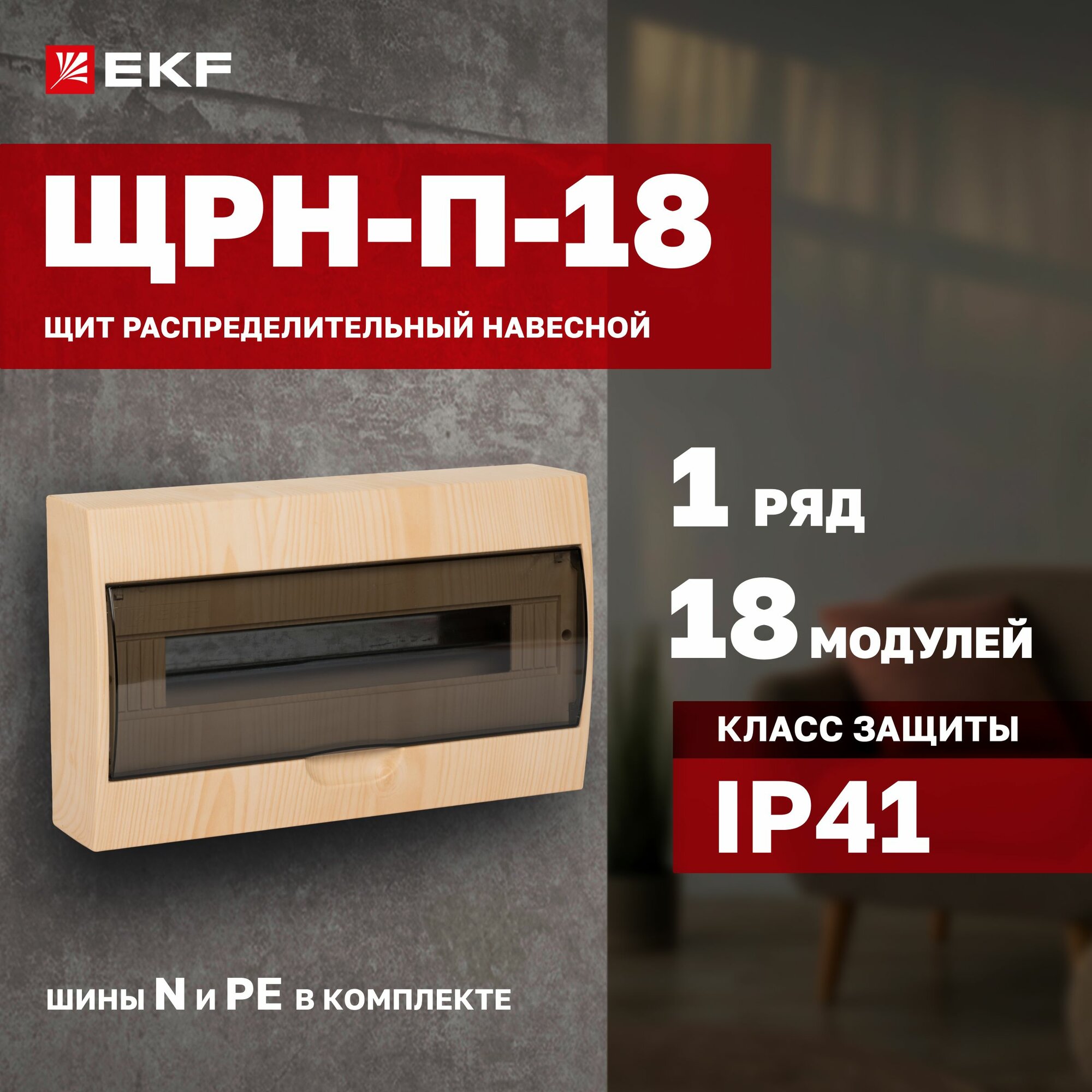 Распределительный навесной щит EKF Щрн-п-18, Ip41, PROxima, темное дерево SQpb40-n-18-dark .