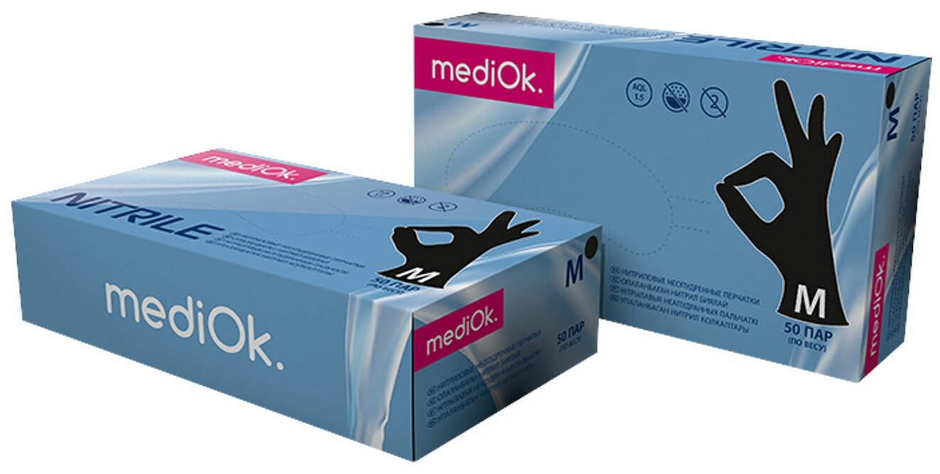 Перчатки смотровые mediOk Nitrile толщина 0,07х0,09 мм, 50 пар, размер: M, цвет: черный информация: