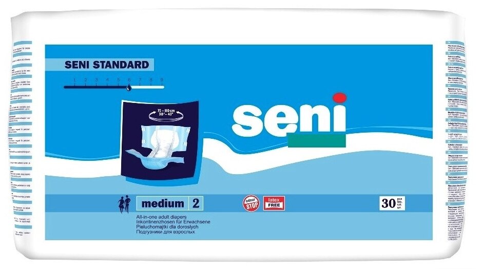 Подгузники для взрослых Seni Standard Air, M, 75 х 120 см, 75-110 см, 1 уп. по 30 шт. информация: