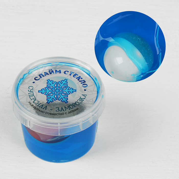 Слайм «Стекло» синий с капсулой серебро внутри, 90 г в банке, микс, "Лепа", цвет голубой, материал полимер