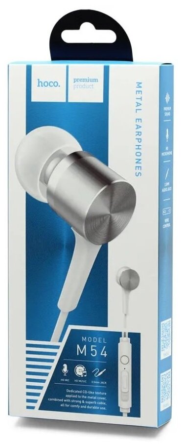Отзывы на Проводные наушники вкладыши HOCO M54 Pure, AUX Jack 3.5mm, для телефона/компьютера, 1.2 м, белый