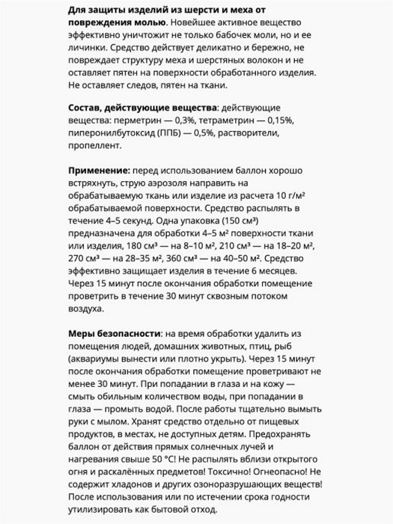 Средство от моли "Вихрь" антимоль, аэрозоль, против моли и кожееда (150 мл.) информация: