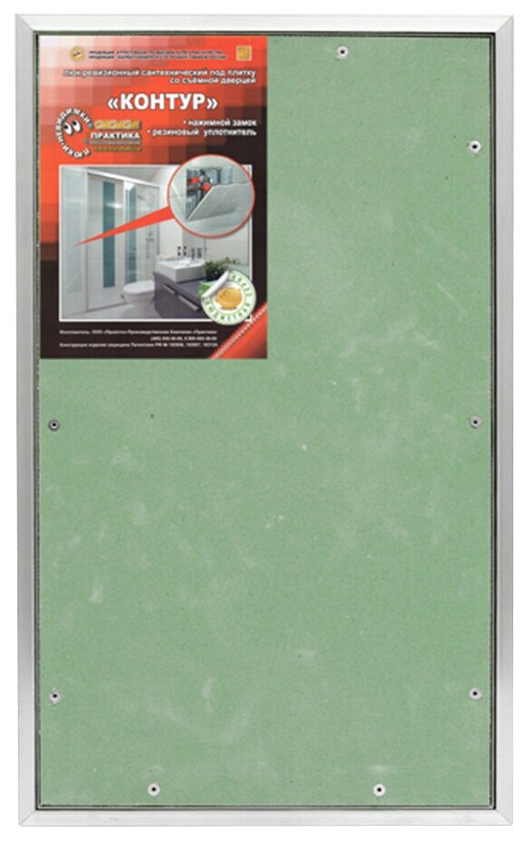 Ревизионный люк Контур 30-20 настенный под плитку ПРАКТИКА, серебристый/зеленый