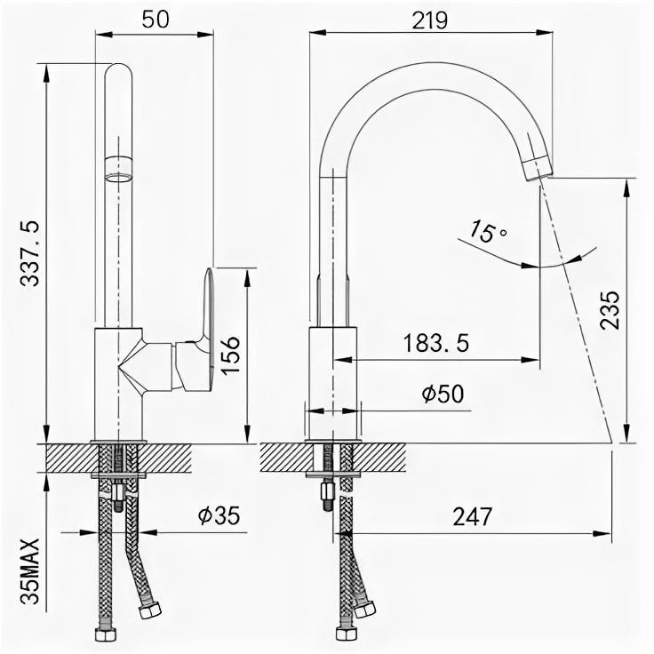 Смеситель для кухни (мойки) IDDIS Cuba CU5BLJ0i05 однорычажный