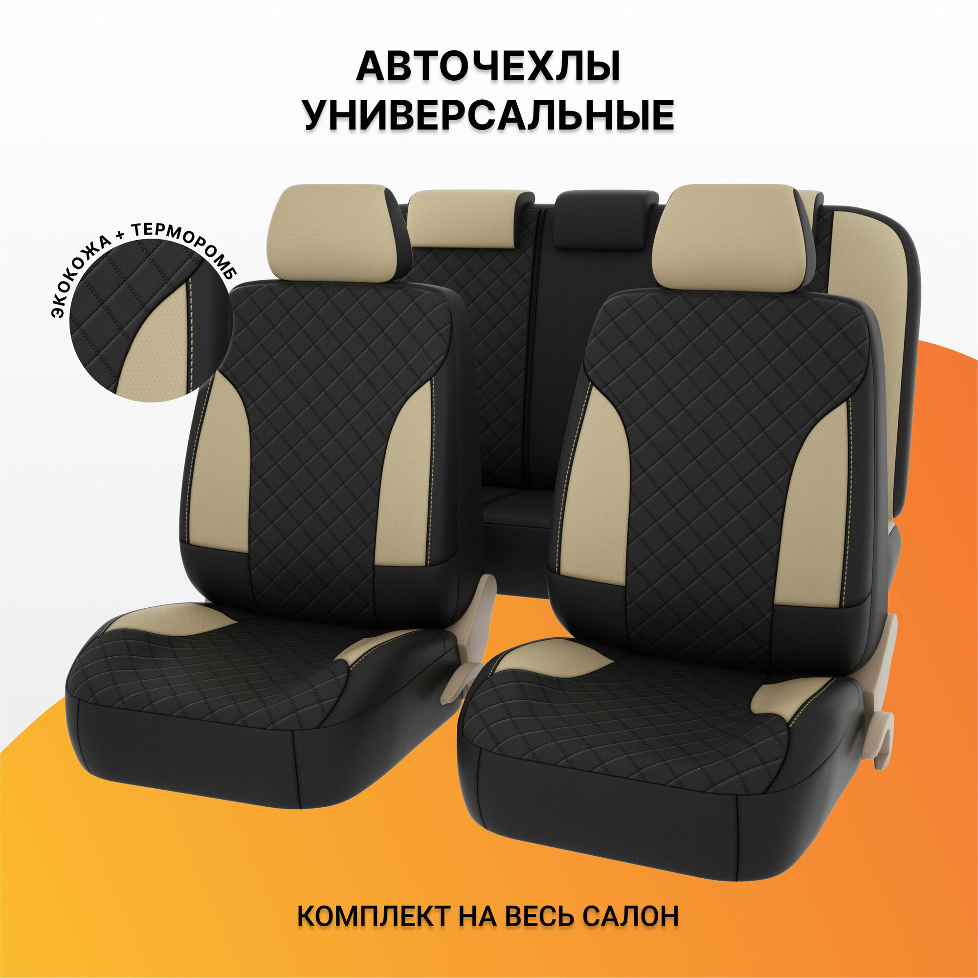 Чехлы King Next экокожа + терморомб черно-бежевые PSV PSV 131954 | цена за 1 шт