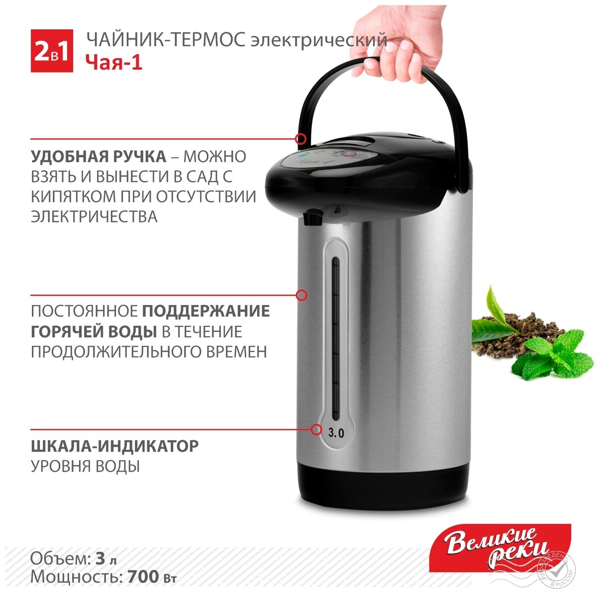 Чайник-термос Великие Реки Чая-1, черный . информация: