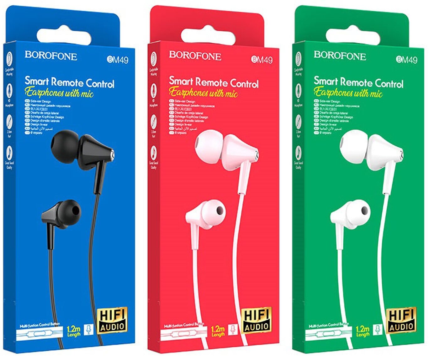 Наушники внутриканальные Borofone BM49, Player, кнопка ответа, кабель 1.2м, цвет: розовый