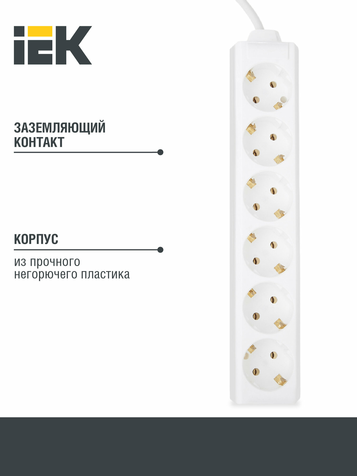 Удлинитель iEK 6 розеток с заземлением, 3 x 1 мм, 3 метра