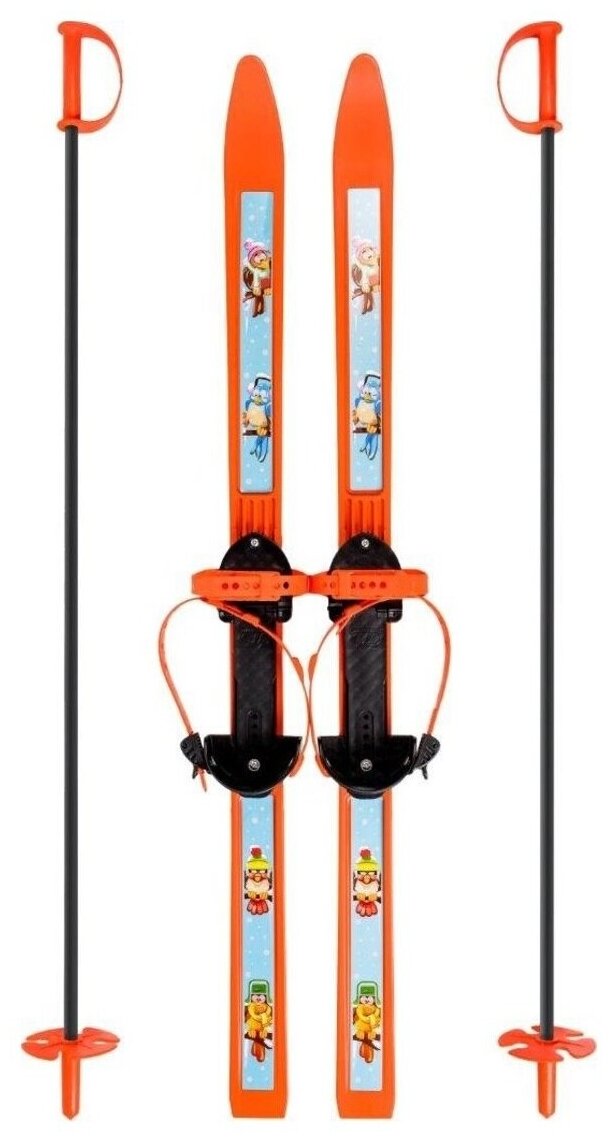 Лыжи детские "Олимпик-спорт" Мишки (игрушка детская) 66/75 см, крепление мягкое пластиковое, с палка