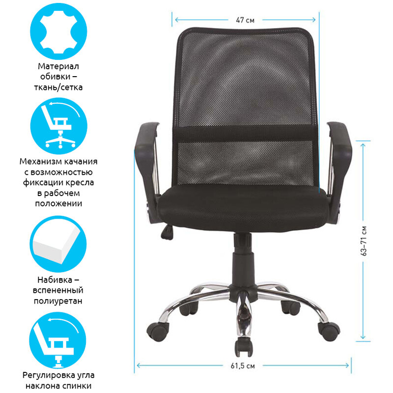 Кресло оператора Helmi HL-M09, ткань/сетка черная, механизм качания, хром 11 928 ₽