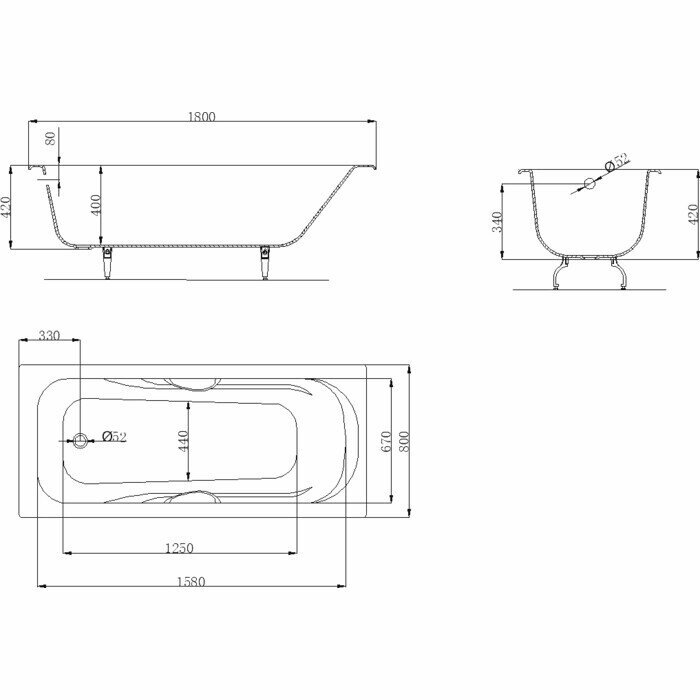 Ванна Gamma 140х70 см, акриловая, на каркасе, экран к ванне Gamma 140