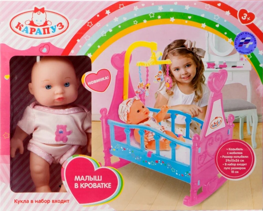 Кукла Карапуз в кроватке, 16см информация: