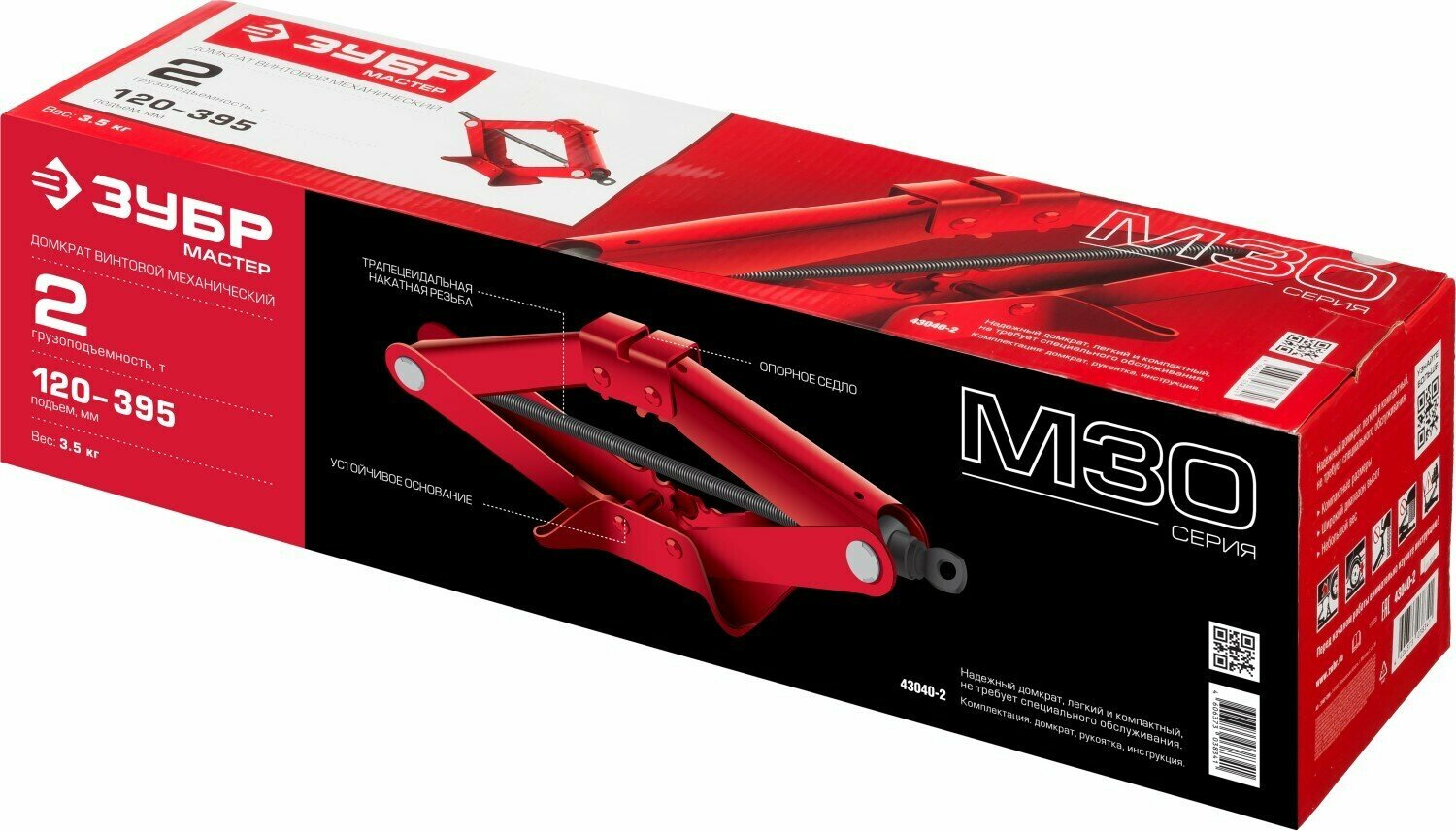 Домкрат автомобильный Ромбический Механический ЗУБР 2т 95-390мм информация: