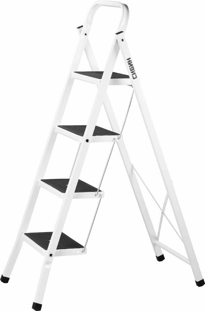 СИБИН 4 ступени, 95 см, c широкими обрезиненными ступенями, стальная, стремянка (38807-04) информация: