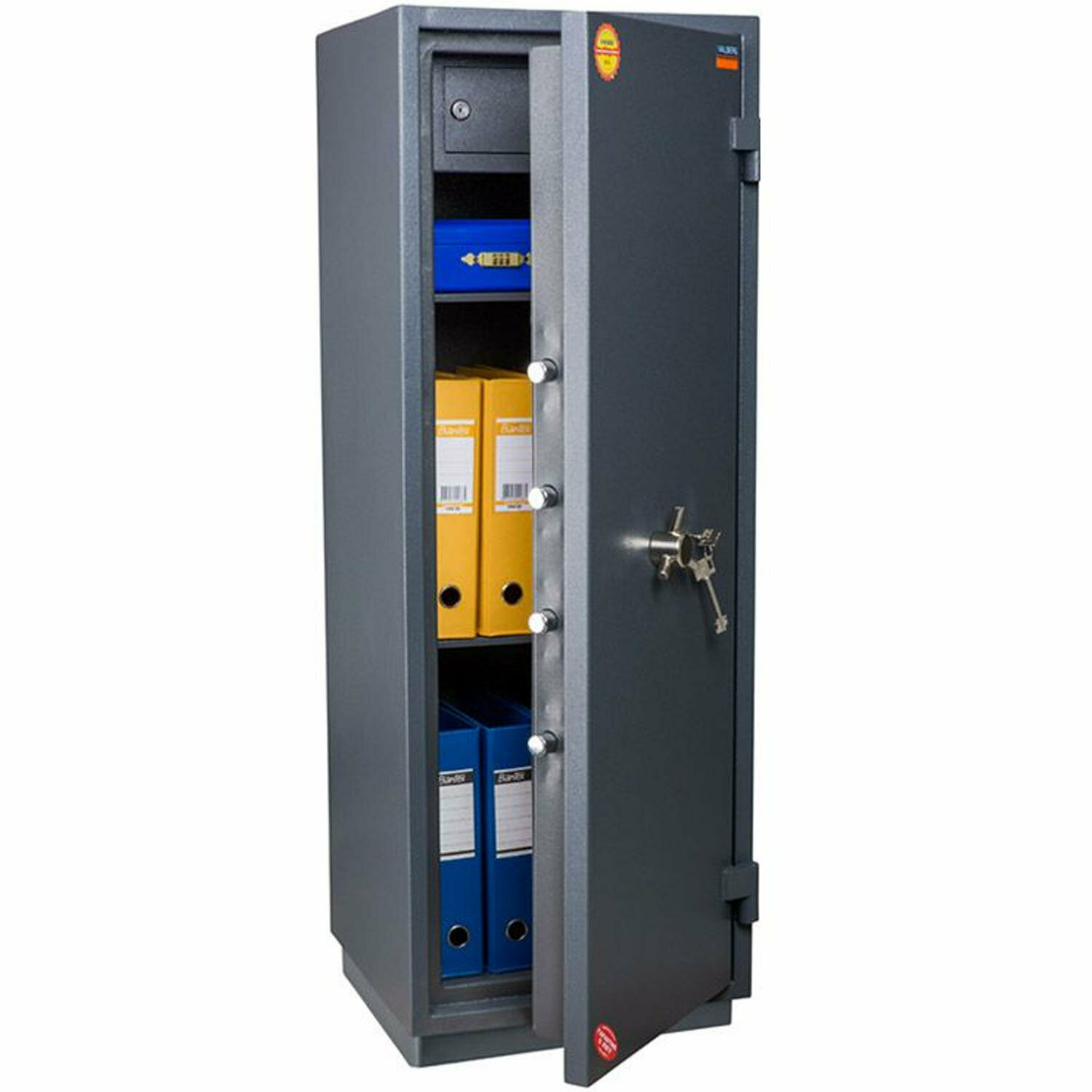 Цельностальной сейф, 3 слоя дополнительного пространства внутри, прочный и долговечный.