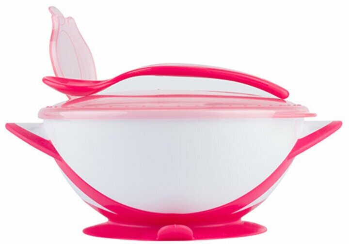 Тарелочка с присоской, крышкой и ложечкой (розовый) информация: