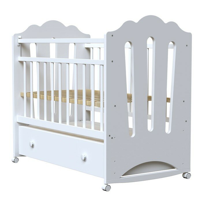 Кровать детская BONNE колесо-качалка с ящиком (белый) (1200х600) информация: