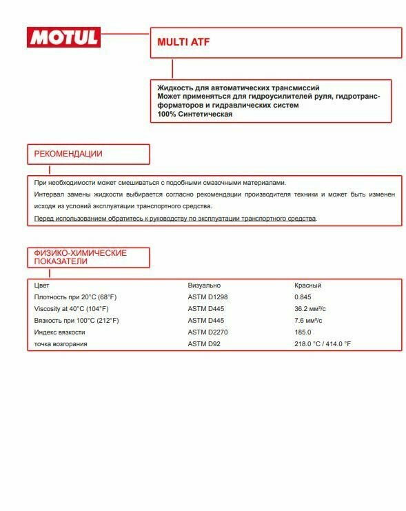 Отзывы на Масло Трансмиссионное Motul Multi Atf Синтетическое 1 Л 112147 MOTUL арт. 112147