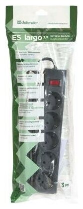Сетевой фильтр Defender ES largo 3 черный, 3,0 м, 5 розеток(99498) информация: