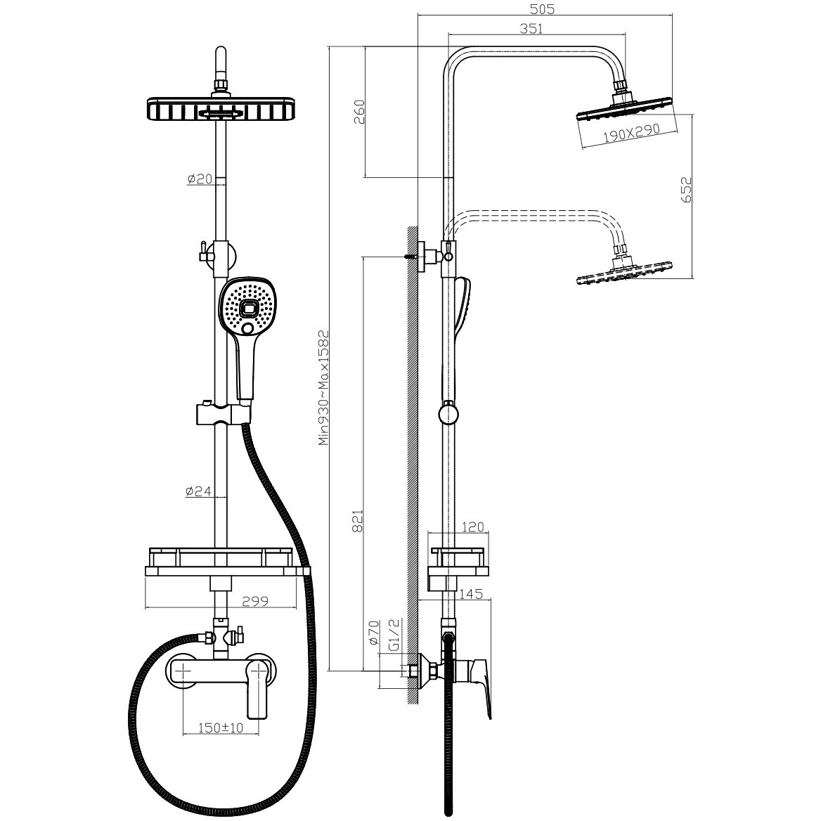 Душевая система Rossinka RS27-45 с регулируемой высотой штанги