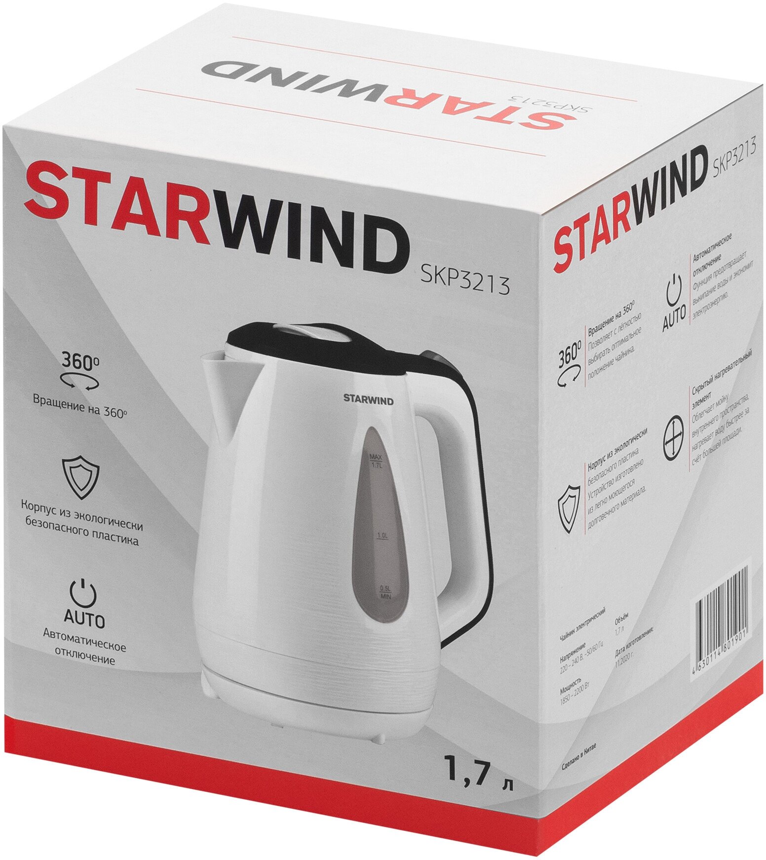 10 цен на Чайник Starwind SKP3213 1.7л. 2200Вт белый/черный (пластик)