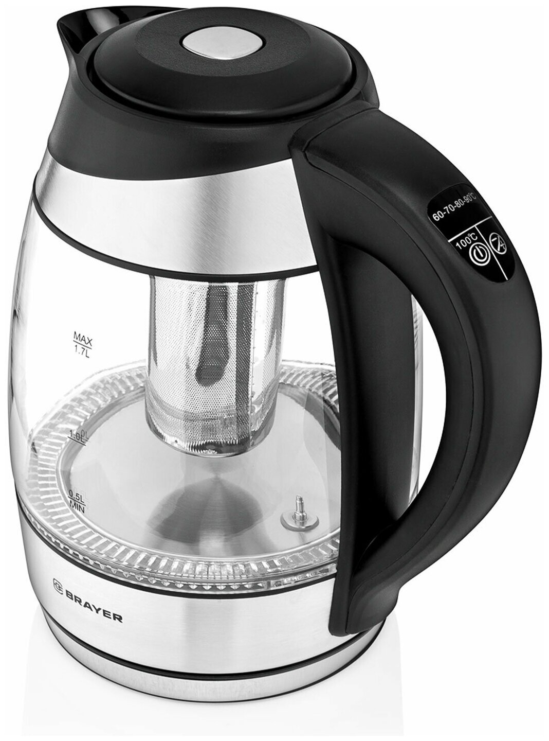 Чайник электрический BRAYER BR1021, 2200Вт.1,7 л, стекло информация: