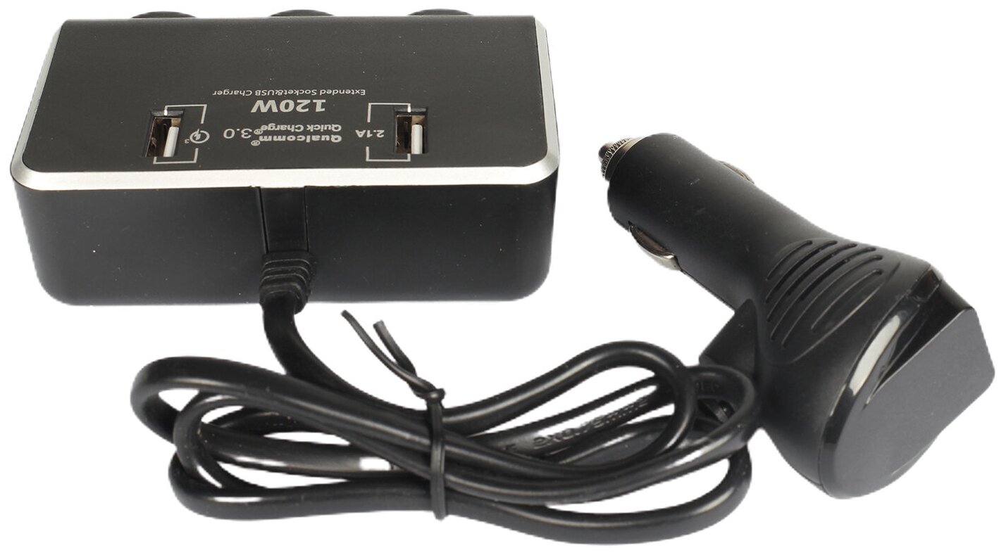 Разветвитель прикуривателя (12/24V) на 1 гнездо 120 W + 2хUSB (2.1А, 1.0А)
