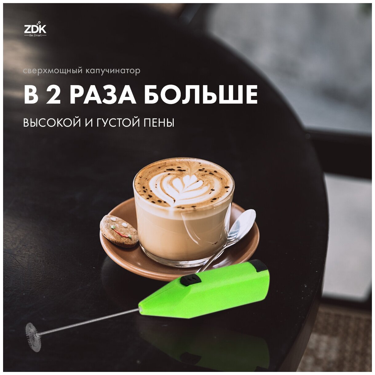 Отзывы на Вспениватель молока для капучино, капучинатор для молока ручной беспроводной на батарейках ZDK Easy Cappucino 1G зеленый