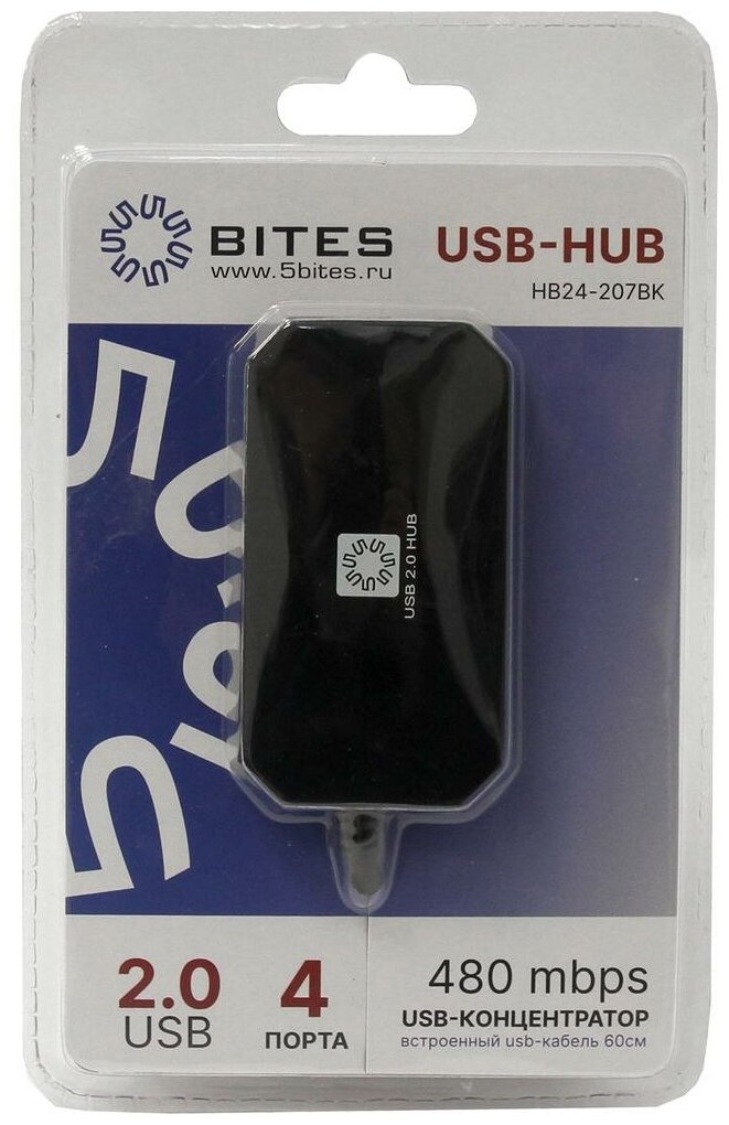 Отзывы на Разветвитель USB 2.0 5BITES HB24-207BK 4*USB2.0 / USB 60CM / BLACK