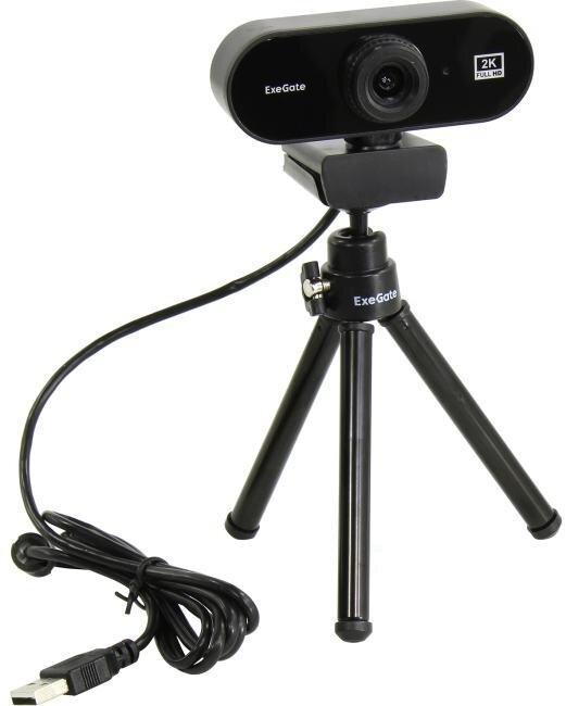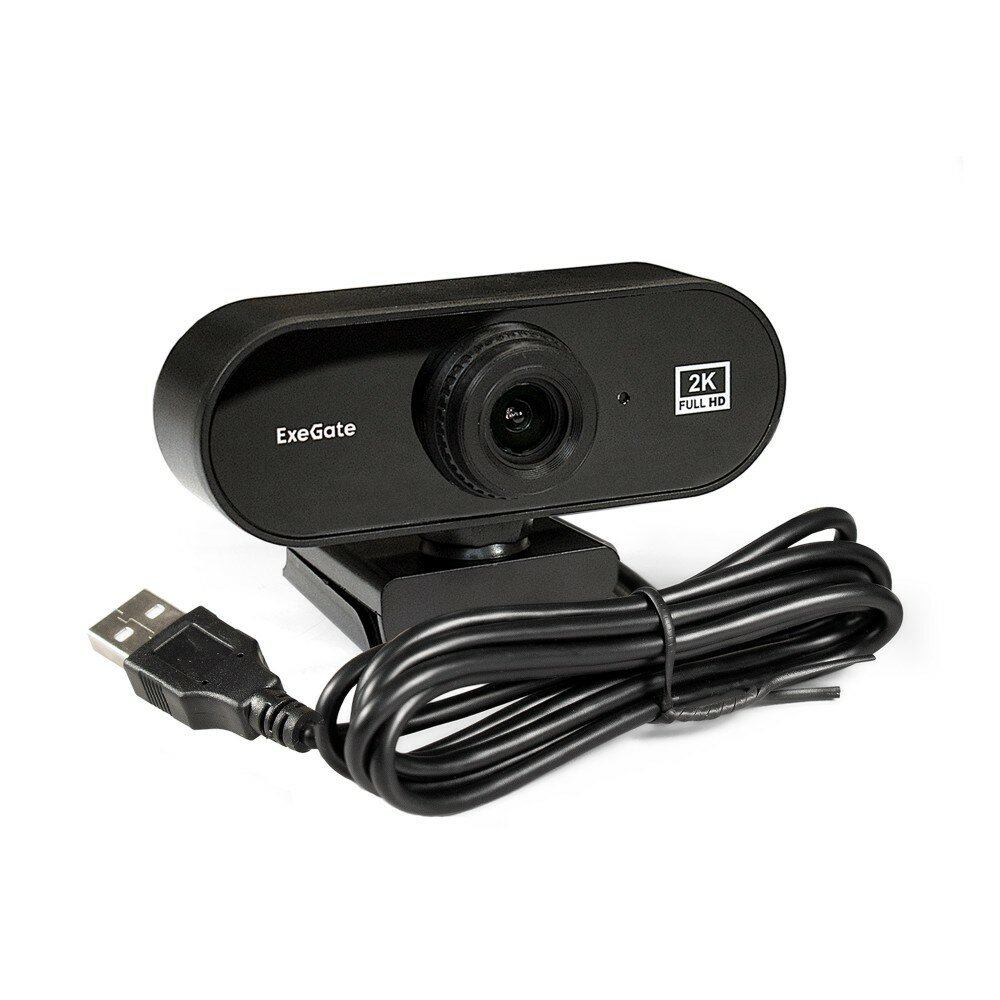 Веб-камера ExeGate Stream С958 2K (матрица 1/3.2" 5Мп, 4-линзовый объектив, автофокус, USB, микрофон с шумоподавлением, универсальное крепление, кабель 1,5 м)