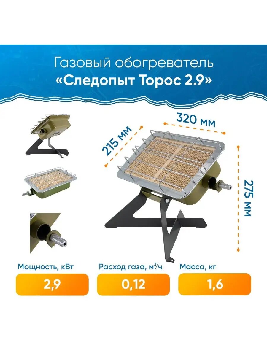 Газовый обогреватель с ножками инфракрасный следопыт "Торос" 2,9 кВт / Инфракрасная горелка для обогрева помещений / Газовая плита-обогреватель