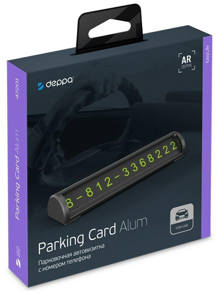 Парковочная автовизитка Deppa Easy Life с номером телефона Parking Card Alum , алюминий, черный информация: