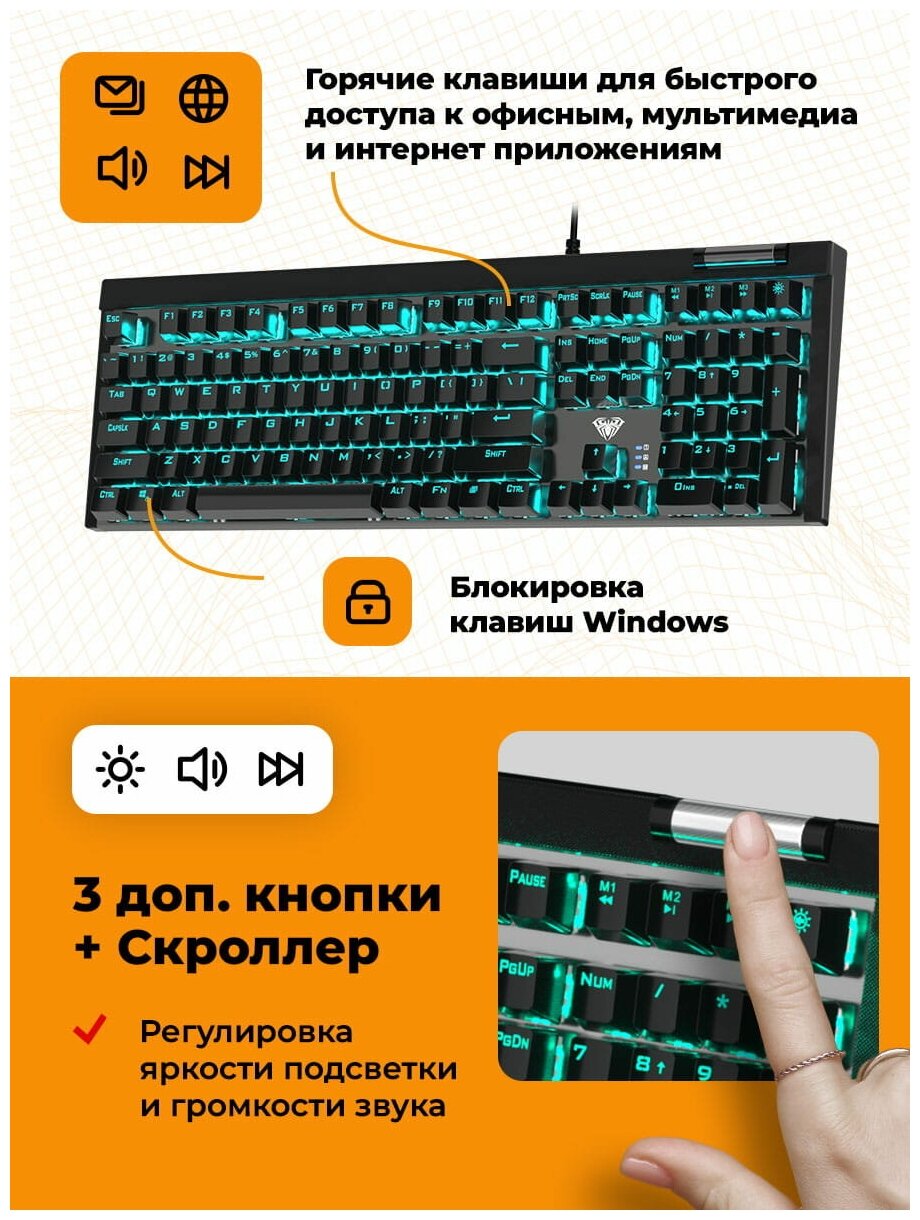 Клавиатура игровая AULA F3030 механическая 108 кл, алюминий/пластик, роллер+3 доп кнопки, RGB подсветка - кабель 1.6м