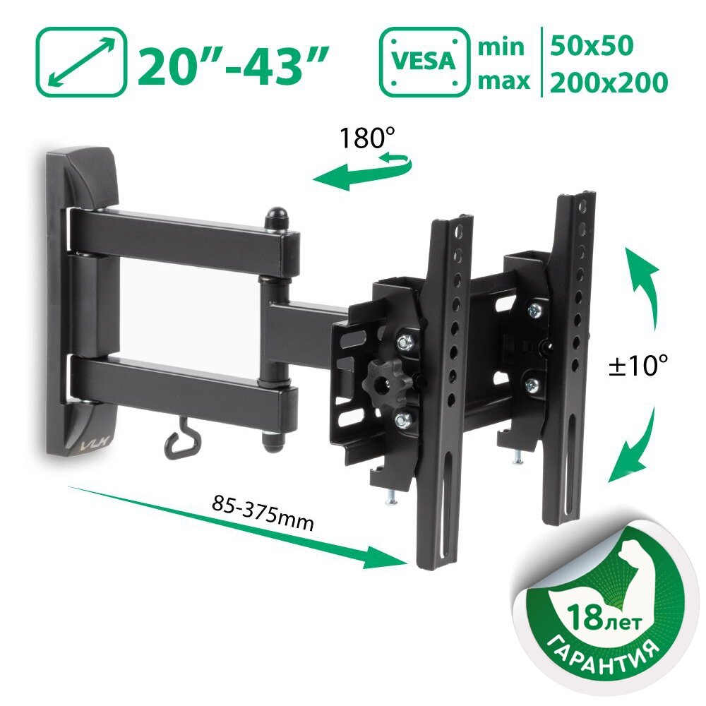 Кронштейн VLK TV 20-43 настенный, наклонно-поворотный, черный (TRENTO-13, 51019) 4 183 ₽