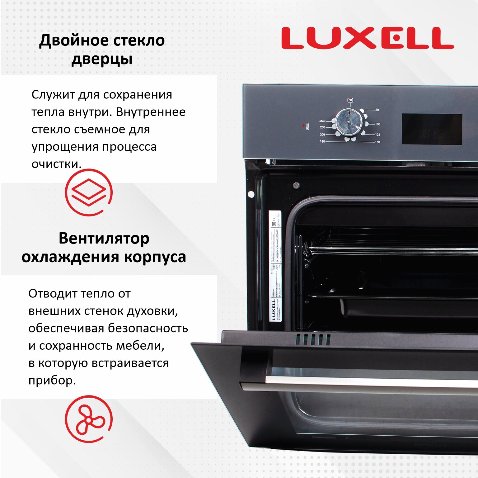 Духовой шкаф электрический встраиваемый LUXELL B66-SGF3, черный 30 990 ₽