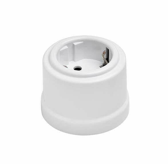 Розетка 1-м ОП Лизетта 16А IP20 ретро с заземл. керамика бел. Bironi B1-101-01