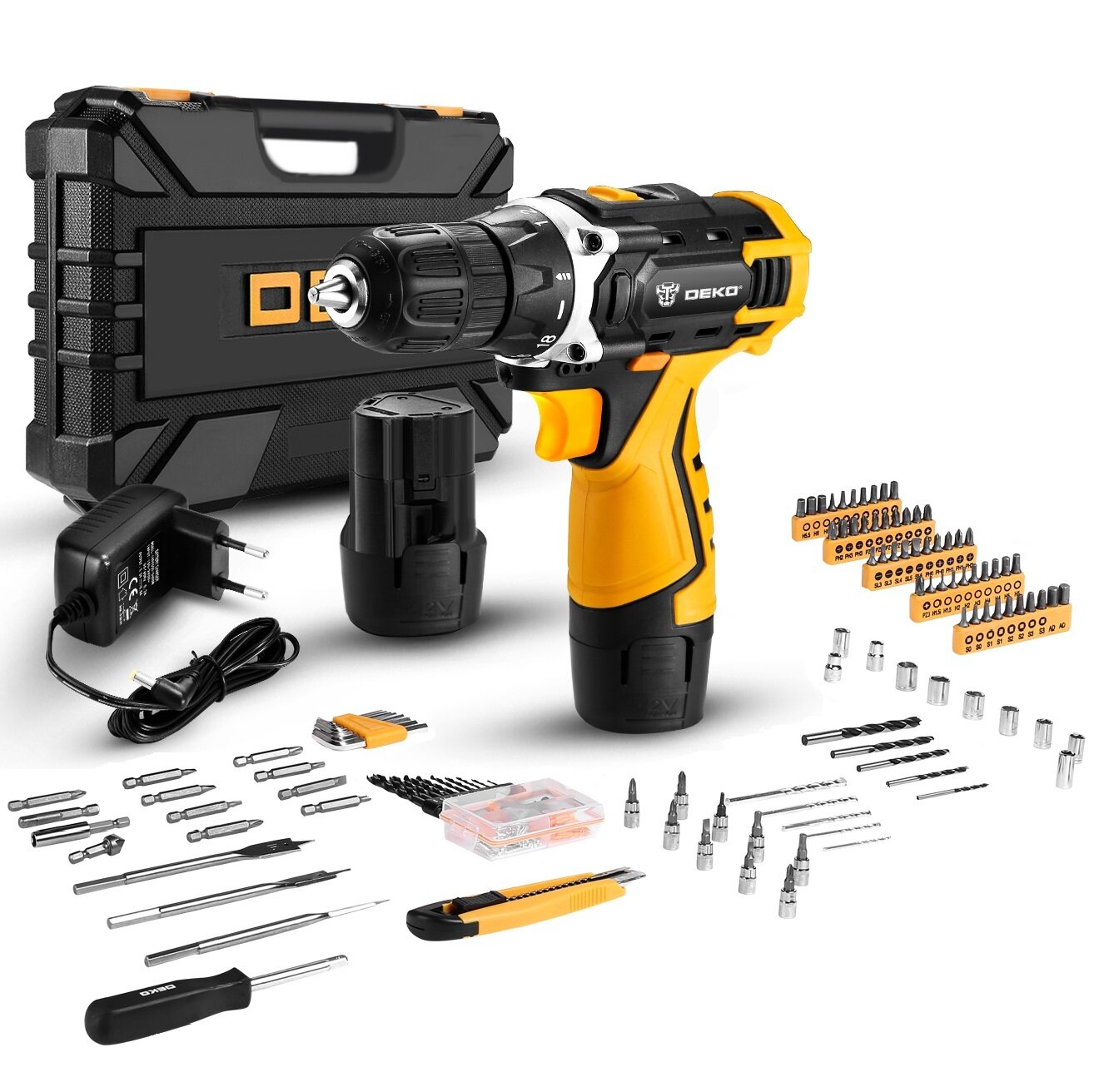 10 цен на Аккумуляторная дрель-шуруповерт DEKO DKCD12FU-Li в кейсе + набор 193 инструмента для дома, 12В, 2х2.0Ач
