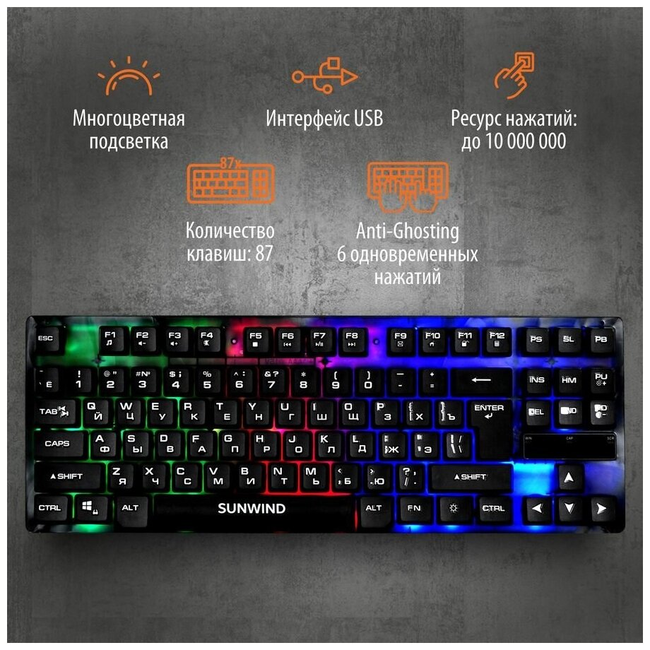 Компактная игровая клавиатура SUNWIND, клавиатура с подстветкой RGB, мембранная клавиатура, черная