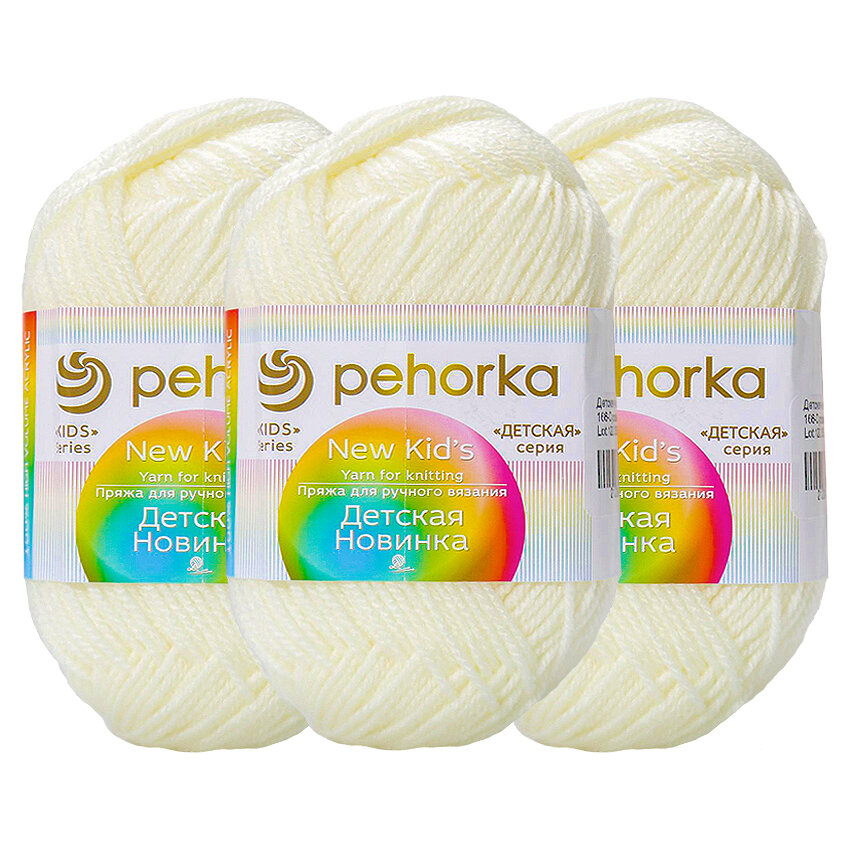 Пряжа для вязания Пехорка Детская новинка, комплект: 3 шт., цвет: суровый (166), состав: 100% акрил, вес: 50 г, длина: 200 м информация: