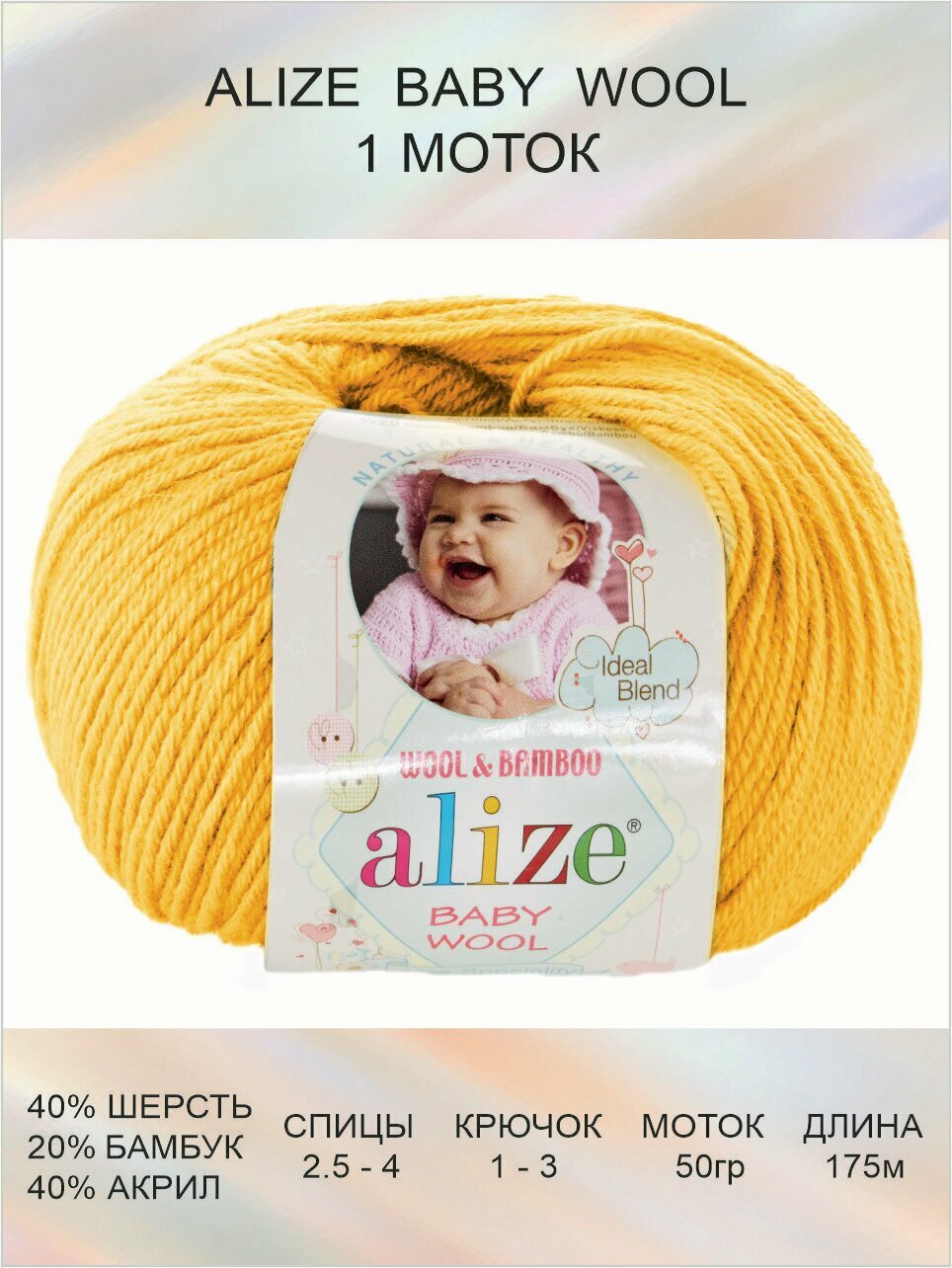10 цен на Пряжа Alize Baby Wool желтый (548), 40%шерсть/20%бамбук/40%акрил, 175м, 50г, 1шт