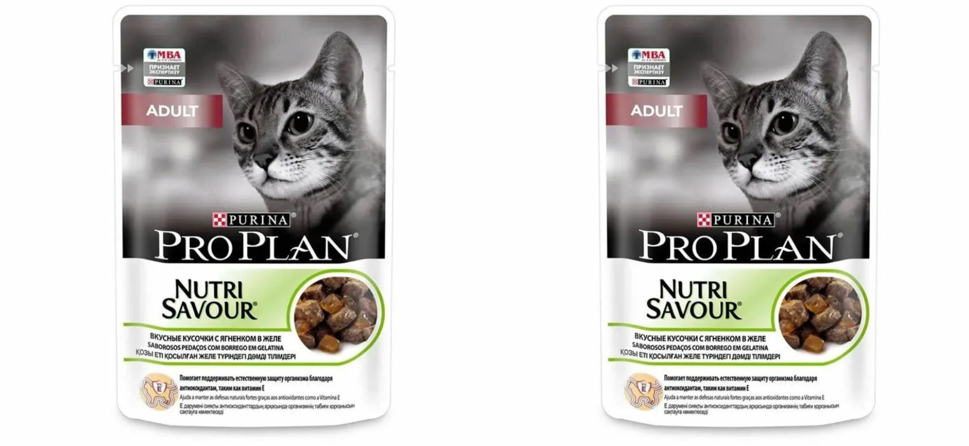 Pro Plan влажный корм для взрослых кошек, кусочки с ягненком, в желе, 85 г, 2 шт информация: