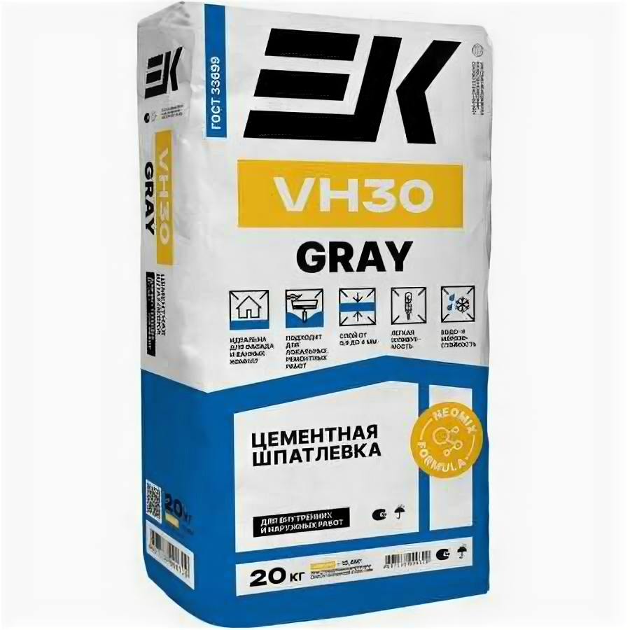 Шпатлевка ЕК Кемикал цементная серая EK VH30 20кг 60 (1шт) (127443) информация: