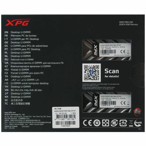 Оперативная память ADATA XPG SPECTRIX D41 RGB AX4U320016G16A-DT41 32 ГБ информация:
