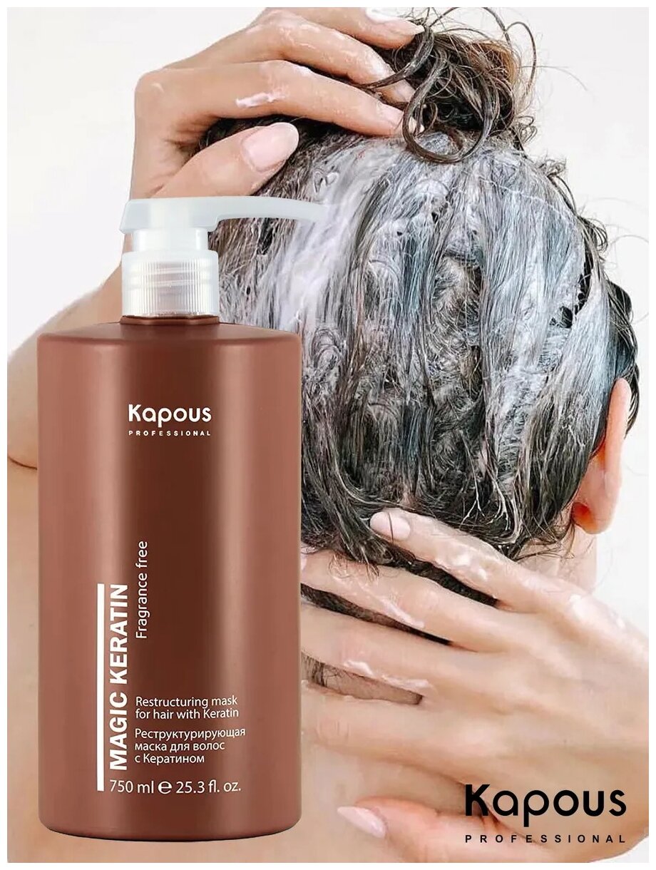 Маска реструктурант Kapous Professional Magic Keratin, для сухих и поврежденных волос, 750 мл