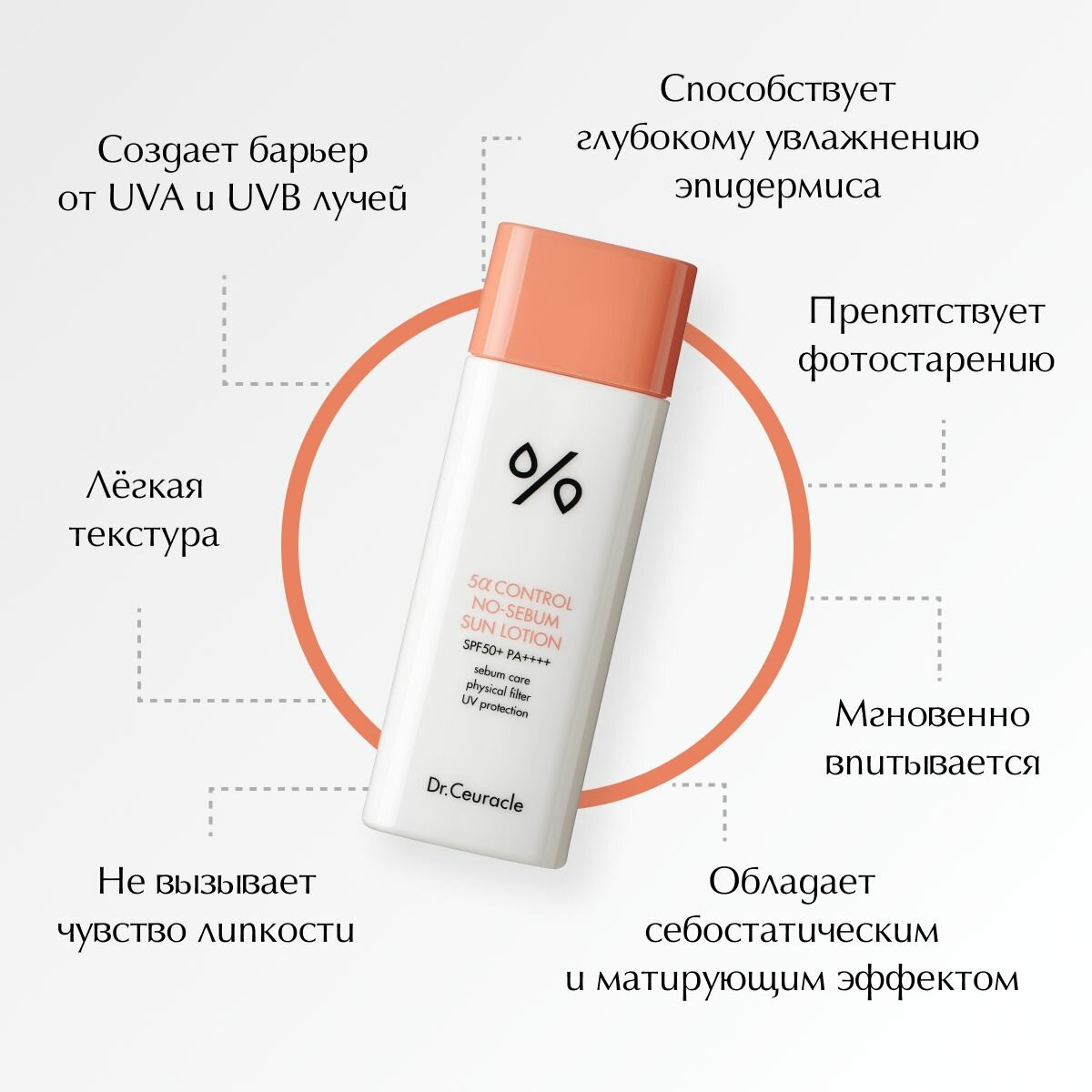 Dr.Ceuracle лосьон 5α Control No Sebum Sun Lotion SPF 50, 50 мл, 1 шт