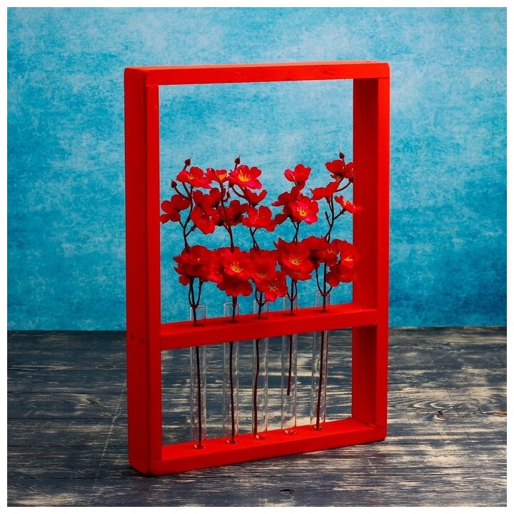 Кашпо деревянное 28×4.5×40 см с 5 колбами "Рамка Экстра", красный Дарим Красиво