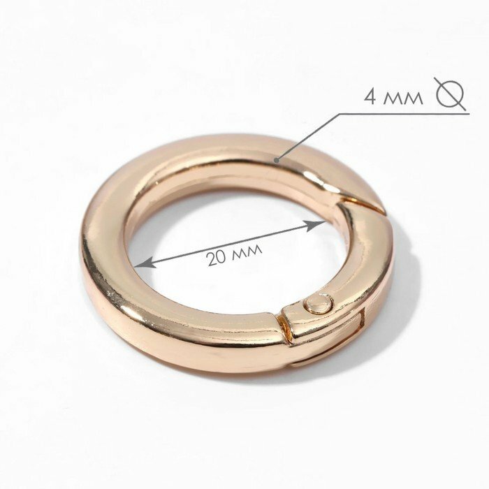 Кольцо-карабин плоский, d = 20/28 мм, толщина - 4 мм, 5 шт, цвет золотой Арт Узор 4598299 .